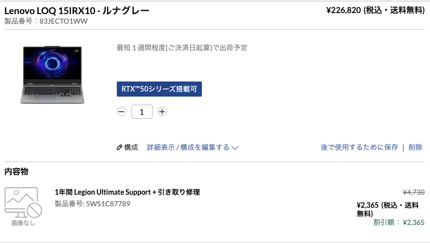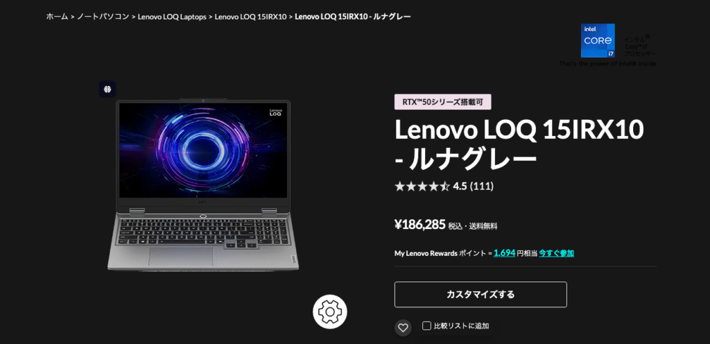[Lenovo LOQ 15IRX10 の最新価格・在庫状況をチェックする]