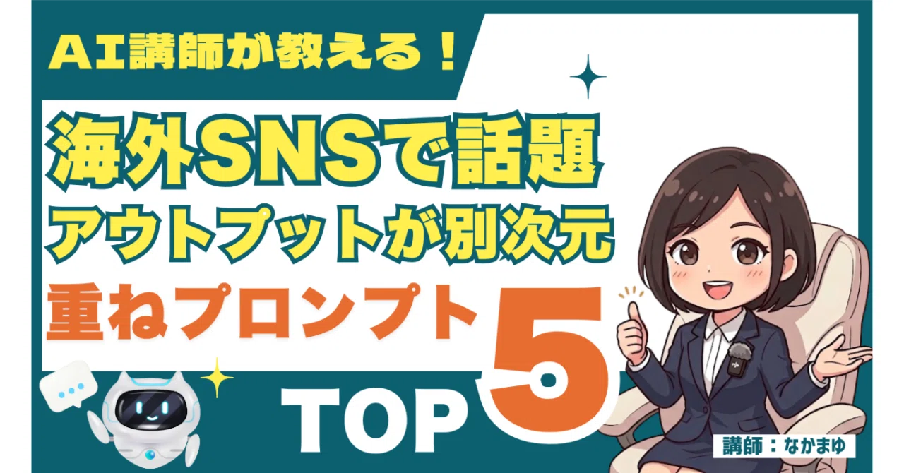 📌 この記事で紹介するプロンプト技術は、海外AIメディア・SNSコミュニティで実際に話題になったものをもとに、AI講師・なかまゆが企業研修でも活用している厳選5選です。